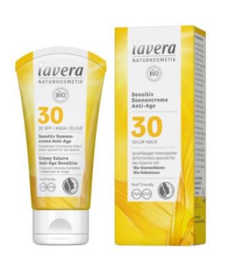 Ponudba izdelkov za zaščito pred soncem Lavera vsebuje cinkov dioksid in titanov dioksid, ki sta močni, a koži in zdravju prijazni mineralni sredstvi v naravni in organski zaščiti pred soncem. Poleg zaščite kože z naravno in organsko sončno kremo je pomembno, da jo ohranjamo tudi navlaženo in nahranjeno sončnimi učinki izsušenja. Izbira naravnega in organskega pršila ali kreme za sončenje je odvisna od osebnih želja, vendar je treba skrbno pretehtati izbiro faktorja SPF, zlasti za tiste, katerih koža je občutljiva ali razdražljiva.